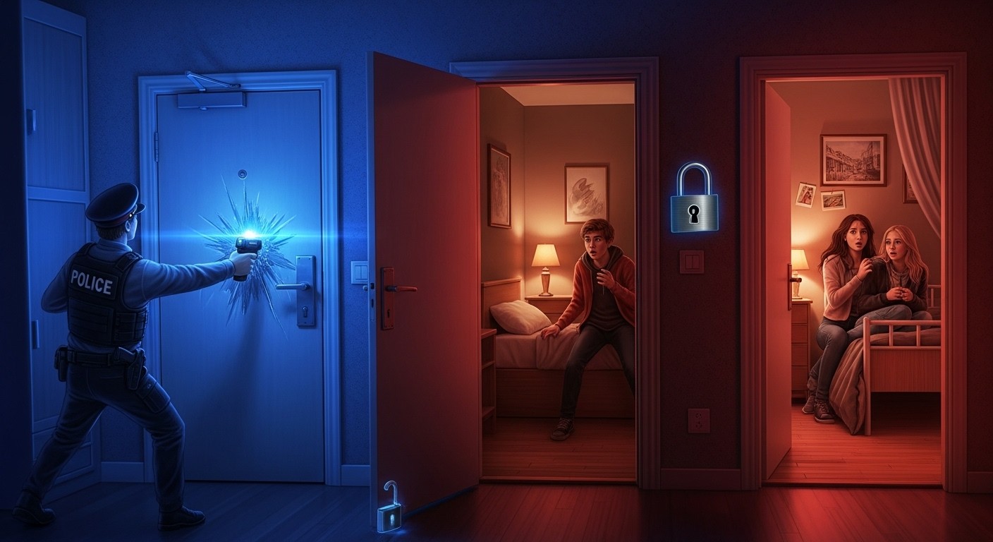 Les forces de l’ordre sont arrivées rapidement sur les lieux, alertées par l’appel désespéré des adolescents. Mais une fois devant la porte de l’appartement, les choses se sont compliquées. Le père refusait catégoriquement d’ouvrir, malgré les tentatives répétées des policiers pour le raisonner. Ils ont passé de longues minutes à dialoguer à travers la porte, essayant de désamorcer la tension sans recourir à la force.