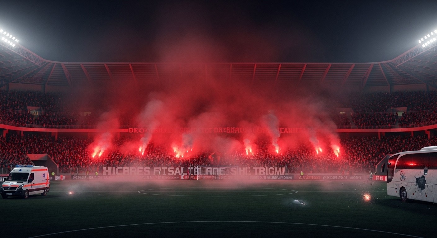Imaginez un vendredi soir ordinaire au stade, l’ambiance monte, les chants résonnent, et soudain, tout bascule. Ce qui devait être une simple rencontre de Ligue 2 entre deux équipes régionales s’est transformé en scène surréaliste, presque digne d’un film d’action mal tourné. La fumée rouge envahit tout, les joueurs disparaissent dans le brouillard, et l’arbitre n’a d’autre choix que d’arrêter le jeu. Voilà ce qui s’est passé récemment lors d’un match qui restera dans les annales pour les mauvaises raisons.